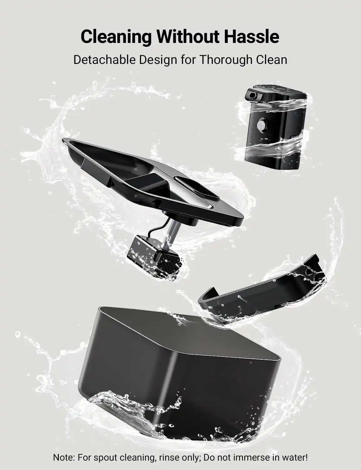• Cleaning Is A Breeze – Cat water fountain wireless is BPA-free and helps prevent pet acne. All parts are easy to assemble and disassemble, makes it super easy to clean every corner without hassle. NOTE: For the spout cleaning, rinse only, don’t immerse the battery compartment in water